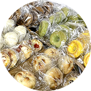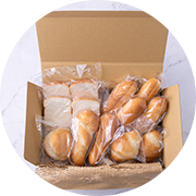自然解凍で美味しい米粉パンにとって1番の問題は時間が経つことで『硬くなってしまうこと』でした。ふわこめでは焼きたてふわふわをキープした状態でお届けできるように急速冷凍を採用。温め直し不要、自然解凍にて美味しくお召し上がり頂けます。